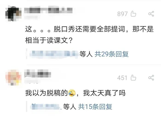 有人认为,观众看明星讲脱口秀,更在意他们“敢说”的内容、临场表演的表现力,还有被吐槽者当下真实的反应。但现在这些意外都变成了预设好的答案,连语气词都有提示,那是不是人人都可以上去吐槽?以后相声、小品是不是也需要提词器?