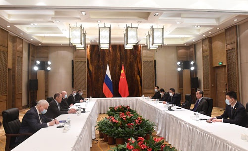 2021年3月23日,国务委员兼外长王毅在广西桂林同俄罗斯外长拉夫罗夫举行会谈。