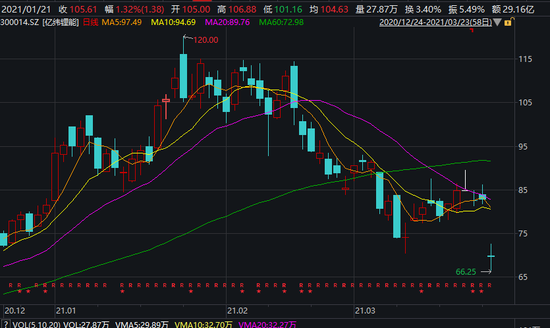 同时亿纬锂能今日也创下历史最大单日跌幅。即使在2月锂电股的集体杀跌中,亿纬锂能单日最大跌幅也不过11.8%。