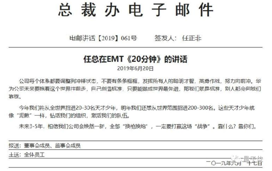“天才少年”是任正非于去年6月发起的用顶级薪酬招揽顶尖人才项目,他曾在EMT(经营管理团队)内部讲话中提及: