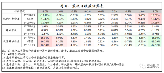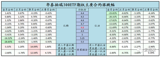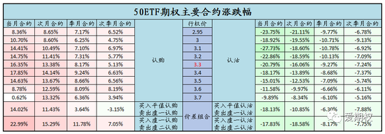 牛市价差组合表现突出,跨式空头也有获利。今日标的涨幅较高的50认购期权普遍收涨,而其他标的的期权合约均受到隐含波动率下降影响而下跌。牛市价差组合今日表现突出,不论是50还是300,牛市价差组合今日均获得了超过直接单腿买入期权的收益。布局波动率回落的跨式空头、宽跨式空头组合也有所获利。