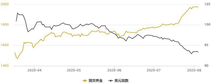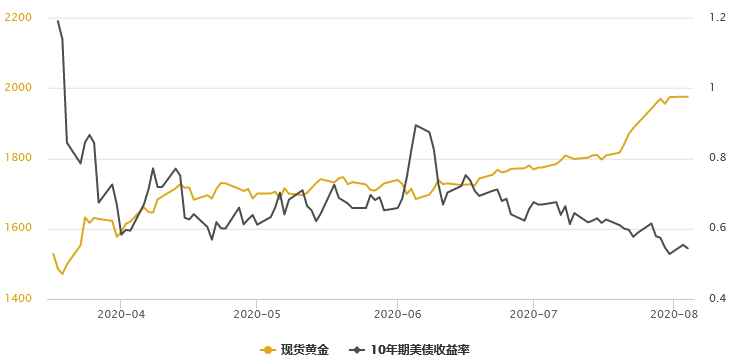 周二(8月4日)现货黄金陷入高位震荡,目前交投于1975美元/盎司附近,资金继续涌入黄金ETF,显示投资需求旺盛,美元指数有所回落,10年期美债收益率依旧处于低位水平,而通胀预期不断升温,这些都支撑黄金,但股市对金价有一定的负面影响。