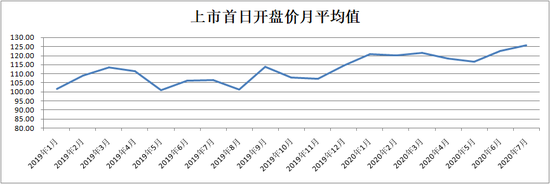 不仅没有出现过“上市破发”,去年四季度以来,转债市场升温,以上市首日开盘价估算的转债打新收益节节攀升。今年7月,上市首日开盘价均值已升至125.71元。