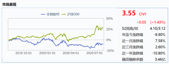 本钢板材持续跑输沪深300