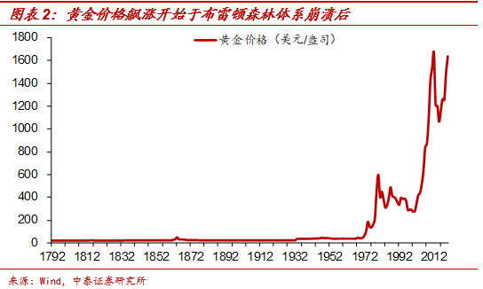 2、黄金天然对抗货币超发。上世纪的70年代、2001年-2012年、以及2018年至今这一轮黄金价格上涨,都伴随着美国政府债务的大幅扩张。这是因为大量购买政府债务是货币超发的一个非常重要的渠道,而黄金作为一种天然的货币,就是来对抗人造纸币的“超发”的。纵观200多年的历史,黄金价格的飙升,也是开始于纸币脱钩黄金后的时代。