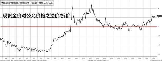 然而历史上在2008年- 2011年间,同样是经济大萧条,通胀预期大涨的时代,黄金溢价一度超过40%。所以当下的金价确实贵,但金价还没贵到上次危机的水平。