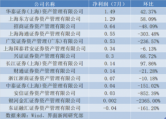 伴随券商7月业绩放榜,券商资管子公司的成绩单也一并亮相。
