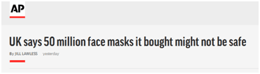 今年4月,英国政府与投资公司Ayanda Capital签署价值2.52亿英镑(约合23亿元人民币)合同,其中就包含这5千万只口罩。