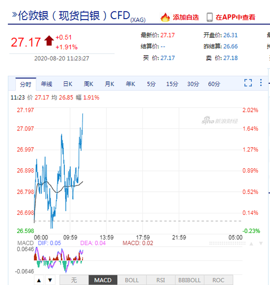 现货黄金重回1950美元/盎司,日内涨幅超1%。 现货白银涨近2%,现报27.17美元/盎司。