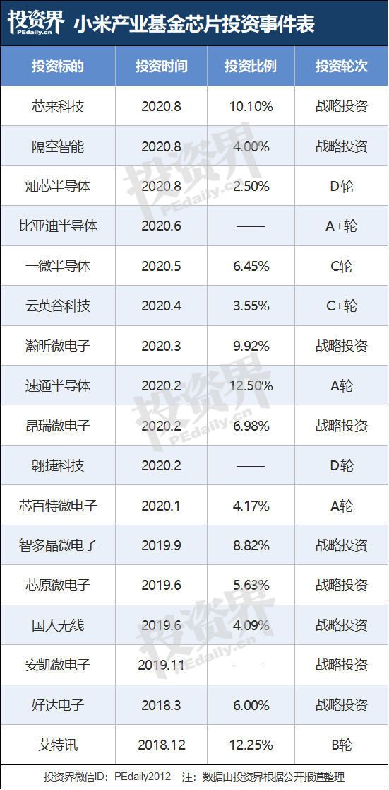 梳理小米芯片投资版图:累计投资超17家,曾一个月出手五次