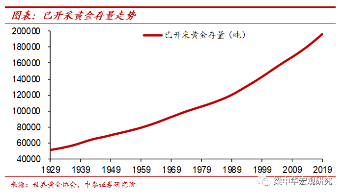 纸币归根到底是‘纸’,是人造的货币,其稀缺性主要靠发行者的‘自觉’,但往往无法保证。而黄金的稀缺性是大自然保证的,是一种天然的货币。黄金是大自然中极其稀缺的资源,截至2019年末,已经开采到地面上的黄金总存量有19.7万吨,已经探明的地面下的黄金储量还剩下4.7万吨。在过去的120年里,已经开采出的黄金存量年均增速只有1.5%,即使考虑到技术的进步,过去20年中的黄金存量增速也只有1.6%。