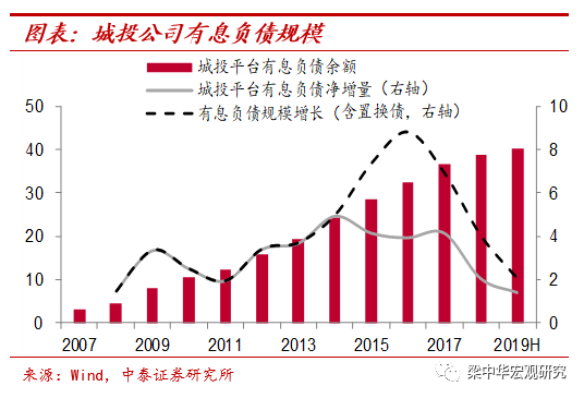 除了房地产的因素以外,2018年以来的经济下行,和广义财政的收紧也有一定关系。从2017年中以来,中央严控地方政府债务增量,终身问责,倒查责任。地方政府隐性负债扩张明显放缓,城投公司有息负债增量连续两年下滑,基建投资增速也是从2018年以来大幅下降。往前看,尽管专项债、特别国债对基建支持力度增加,基建会继续回升,不过力度恐怕比较有限。