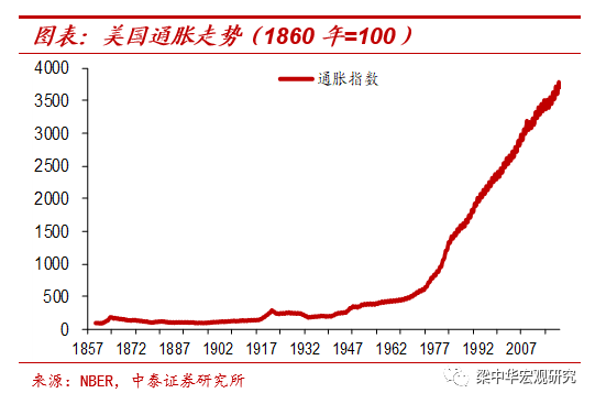 而且在1971年之前的110年里,97%的物价上涨集中在美国内战、一战、二战期间的10多年时间里,也是和纸币超发有关;其它100年时间中基本上没有通胀。