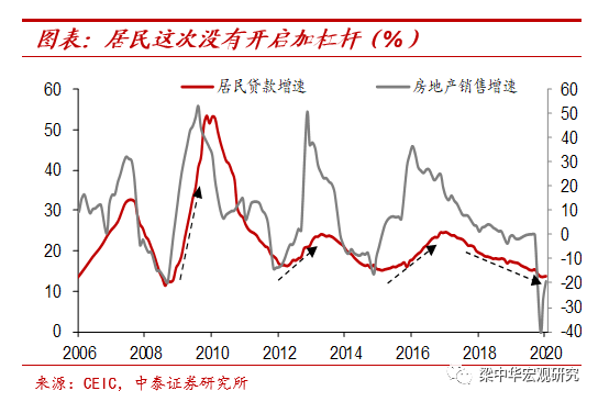 09年、12年、15年经济的企稳回升,都开始于居民加杠杆,背后就是房地产市场的复苏:经济不好-政策放松-居民加杠杆、地产销售好转-企业加杠杆、房地产投资和工业经济好转。所以大家普遍看到的社融领先经济半年,更多是因为房地产销售领先房地产投资半年,本质上是房地产周期在发挥作用。