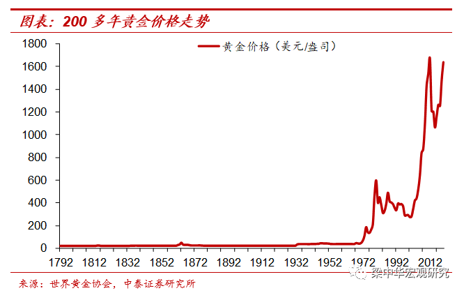 所以黄金价格的‘腾飞’,就开始于纸币泛滥的时代。1971年美国停止美元兑换黄金,全球进入了不受控制‘印刷’纸币的时代。在1971年之前的180年时间里,黄金价格年化涨幅不到0.5%;而从1971年至今的近50年里,年化涨幅达到了7.6%。相对而言,从1971年至今,美元对黄金贬值了97%,果真成了‘纸币’。