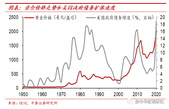本轮黄金的行情还未结束。我们不妨用美国政府债务扩张速度来代理货币超发的程度,每一轮美国政府债务大幅扩张,都会带来黄金的大行情。比如上世纪的70年代、2001年-2012年、以及2018年至今这一轮黄金价格上涨。尽管当前黄金价格在历史高位徘徊,我们认为黄金的大行情还会结束。主因在于美国疫情二次爆发,经济恢复还需要较长时间,货币超发的步伐仍会继续。
