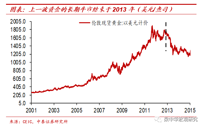 上一波黄金的十多年大牛市终结于2013年,和美联储超发货币的节奏放缓有很大关系。因为从2012年起,美国的多项经济指标就开始不断释放积极信号,所以在2013年已经开始讨论货币刺激规模缩减的问题。2013年5月伯南克提出美联储可能要缩减QE的规模,直到2013年底的议息会议上,美联储决定开始行动。当时黄金价格在一年时间里暴跌了28%,可以说,美国超发货币节奏的放缓,是黄金牛市结束的最直接原因。