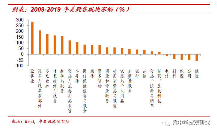 如果看的更远一些,我们认为,未来A股会越来越像美股。回顾美股过去十多年走势,周期类行业的走势整体要远远落后于消费和科技行业,而且内部结构越来越向头部集中。在我国房地产经济趋于下降的背景下,A股也会越来越向新经济领域的优质资产集中。