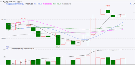 美玉米12合约(ZCZ0)上周以340.75美分/蒲式耳开盘,以341.00美分蒲式耳收盘,上涨3.25美分/蒲式耳,周涨幅0.96%,持仓量80.2万手,成交量77.5万手,上一周持仓量为76.7万手。