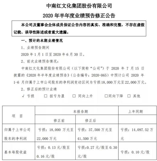 出乎意料的是,在7月31日晚,公司发布了半年报的业绩修正预告,预计上半年亏损3.75亿元至4.15亿元。