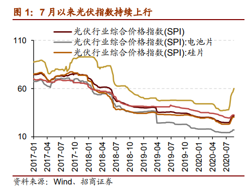 7月以来光伏产业链价格出现全面上涨,其中硅料由于供给端紧缺而出现快速涨价。下半年是国内光伏装机和海外需求增长的传统旺季,光伏需求端具有较强的支撑;同时供给端尤其是硅料供给短期紧缺将会推动产业链价格中枢上行,预计硅片、电池片和组件等价格有望相比去年同期出现明显提升。