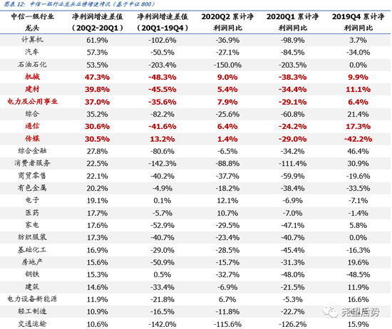 创业板指2020Q2的净利润增速为31.5%,较2020Q1的1.8%提升29.7个百分点