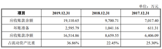 招股书显示,报告期各期末,奥雅设计应收账款净额分别为6406.09万元、8659.55万元和16514.86万元,占流动资产的比重分别为25.30%、22.45%和36.86%,占营业收入的比例分别为23.44%、22.75%和31.91%。