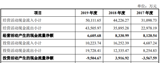 2017年至2019年,奥雅设计经营活动产生的现金流量净额分别为8120.54万元、8330.99万元、6605.68万元。
