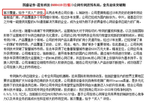 在上述机构调研活动披露后,震有科技也获得机构首次关注,并给出“买入”评级。