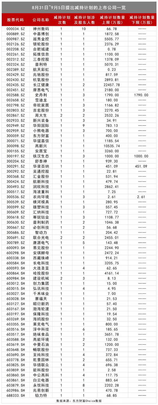 8月31日~9月5日,共有73家上市公司提出减持计划,3家上市公司提出增持计划。