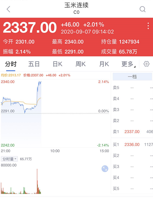 热点栏目9月7日消息,玉米期货持续上行,大涨逾2%。此前消息称,受台风影响,黑龙江绥化玉米等农作物出现倒伏现象。