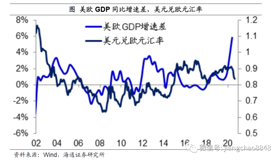 汇率决定的背后有着多种理论,例如经济决定论,亦即汇率反映了两国经济实力的对比。从数据看,过去美欧GDP增速差与美欧汇率的走势大体一致。但在今年疫情期间,美国经济的表现其实好于欧元区,美国2季度GDP增速同比下降9.1%,而欧元区2季度GDP增速同比下降15%,美欧经济增速差距的扩大很难解释同期美元兑欧元汇率的大幅走弱。