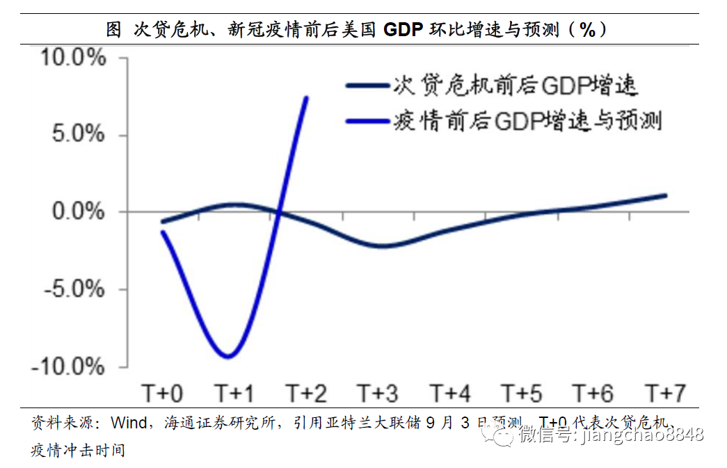 也就是说,相比08年金融危机期间经济的缓慢复苏,这一次美国经济在疫情之后更有可能出现V型反转。根据亚特兰大联储9月3日的最新预测,美国3季度GDP环比增速可能会高达7.4%,年化以后的环比增速或将接近30%。