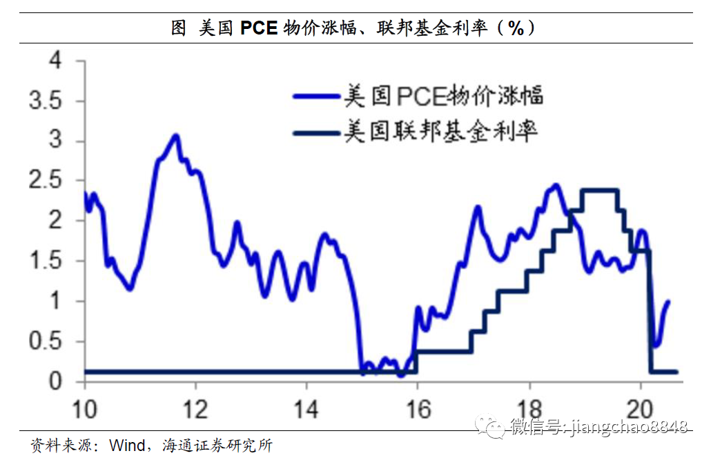 美联储的两大使命是物价稳定和充分就业,近期美联储主席鲍威尔解释了美联储货币政策框架的变化,明确表示基于过去20年通胀率的持续低迷,未来将引入平均通胀目标,这意味着即便未来通胀率出现短期上升,也不会引发美联储加息。事实上,在2010到14年之间,虽然通胀水平并不低,但美联储依然长期维持零利率不变。
