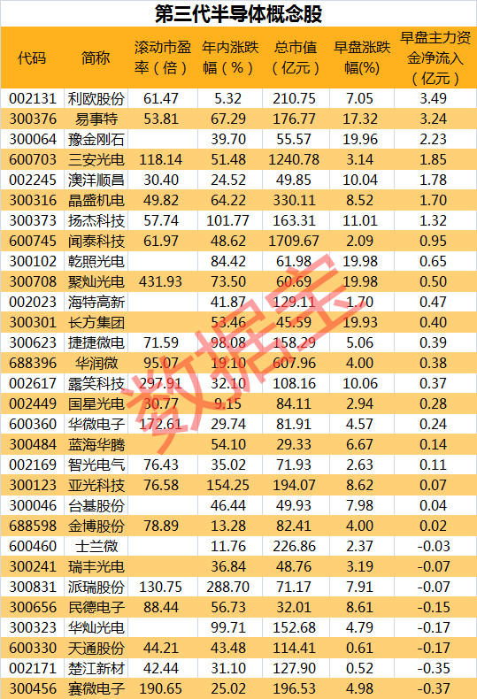 原标题:突发,芯片龙头市值蒸发超百亿元!主力资金紧急抢筹这些第三代半导体概念股(附名单)