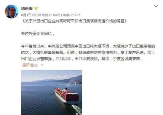 8月初,乐歌股份董事长项乐宏,已经被逼得通过微博公开发文,呼吁降低出口集装箱海运价格,并将该条微博置于首页。他呼吁“增加运量,平抑集装箱的出运价格到合理区间”。