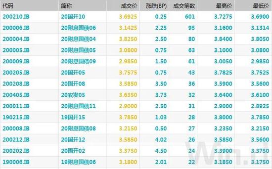 2.国开行随买10年期200205券、随卖10年期170215券、随卖7年期180214券中标收益率分别为3.7649%、3.6299%、3.5972%,投标倍数分别为9、5.64、6.3。