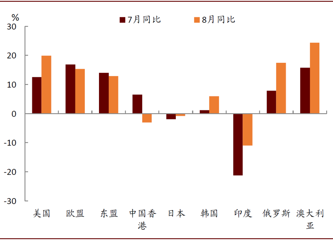 图表: 8月对美国出口扩张幅度较大