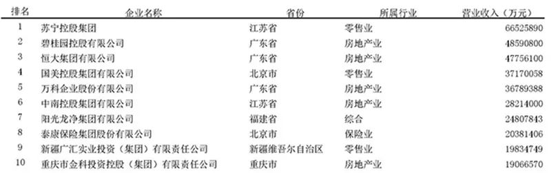 2020中国服务业民营企业100强前10名企业