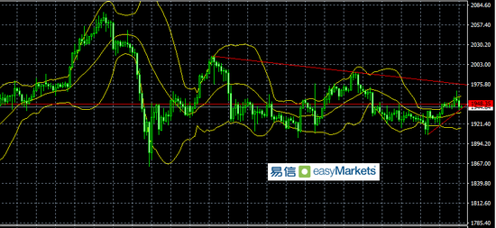 技术上说,黄金压力1950美元,1960美元,支撑是1940美元,1930美元