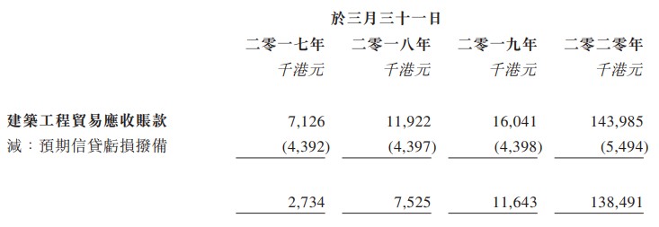 公司的贸易应收账款主要包括(i)公司所进行的模板工程金额(客户已核实付款申请,但尚未由客户支付);及(ii)于收取贸易应收账款的权利成为无条件时,自合约资产重新分配至贸易应收账款的应收保证金。