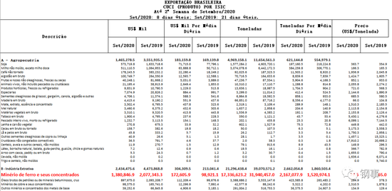 标红的为铁矿石数据(来源:巴西经济部)