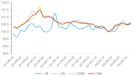 图:2018年1月以来70城及各能级城市