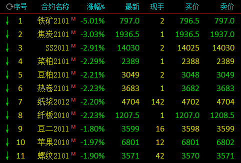 热点栏目9月16日,黑色系午后进一步下跌,铁矿石跌逾5%,跌破800元/吨;焦炭跌逾3%,热卷跌逾2%。