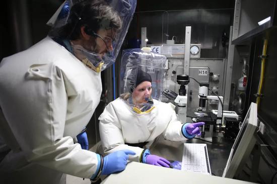 2013年,德国汉堡伯恩哈德·诺希特热带医学研究所的工作人员在研究埃博拉病毒。
