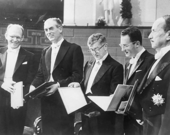 澳大利亚病毒学家麦克法兰·伯内特(右三)和梅达沃共同获得了1960年的诺贝尔生理学或医学奖。