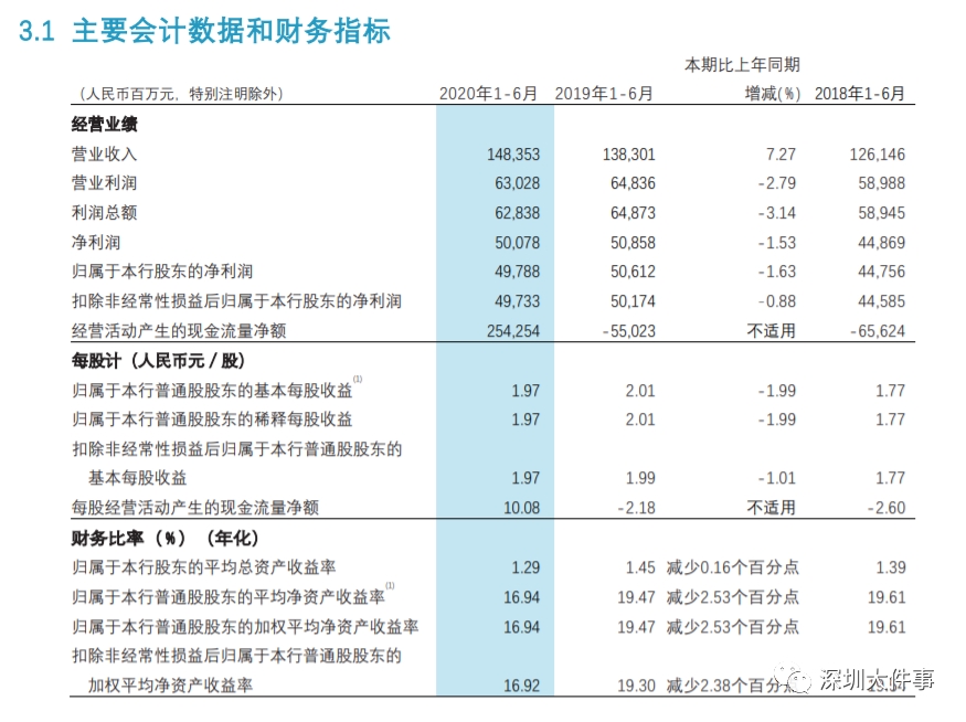 招商银行2020年上半年业绩报告部分截图