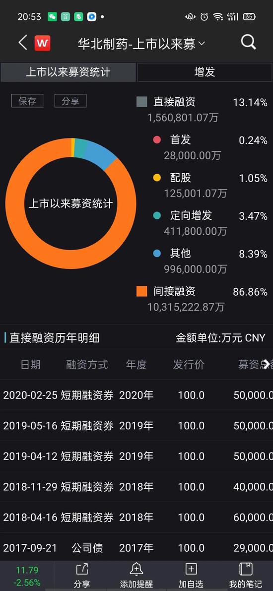 Wind数据显示,自1994年上市以来,华北制药通过首发、配股、增发等方式累计募集金额已经达到156亿元,但华北制药上市以来累计净利润仅约21亿元。