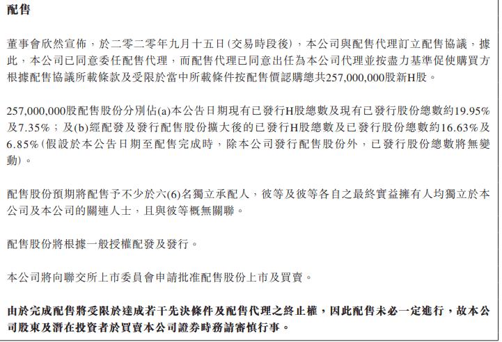 9月15日晚间,富力地产发布公告称,公司拟配售2.57亿股新H股,预计配售所得款净额为24.98亿港元(约合人民币21.83亿元)。富力地产拟把配售所得款项净额用于偿还公司的境外债务性融资。