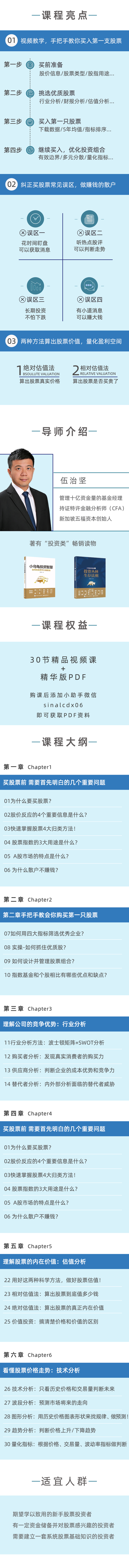 而对于股票投资来说,他的课程也遵守了管用原则,由浅入深,从四个步骤入手,手把手教你做好买入股票的准备 — 挑选优质股票的方法— 买入第一只股票的步骤 — 不断优化投资组合的原则。